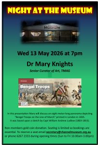 Non-members gold coin donation. Seating is limited so bookings are essential. To reserve a seat email secretary@channelmuseum.org.au